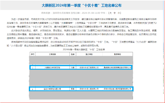 東深工程大鵬新區(qū)養(yǎng)老院項目再次斬獲2024年一季度質(zhì)量安全綜合評估第一名